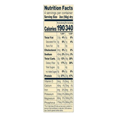 PRODUCT DETAILS: 23 g (per 3.5 oz serving) protein; 8 g (per 3.5 oz serving) fiber. Gluten free. Vegan. GI: Low glycemic index. Banza: 23 g protein; 8 g fiber; 48 g net carbs (net carbs = total carbs - dietary fiber) vs Average Pasta: 13 g protein; 3 g fiber; 71 g net carbs (net carbs = total carbs - dietary fiber). Per 3.5 oz serving. Non-GMO. Made from chickpeas. Powered by chickpeas. Chickpeas make delicious pasta. That's why we used them to create Banza. Now it's your turn. So bake your ziti, mac your cheese ,and pesto the rest-o, because your favorite family meal is back on the menu! eatbanza.com. Find us on Facebook, Twitter and Instagram (at)EatBanza. Get inspired by delicious recipes at eatbanza.com. Made at our plant in Riverside, California.