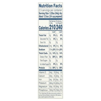 PRODUCT DETAILS: 12 g protein (per serving). 2 x protein; 3.5 x fiber; 25% fewer net carbs (net carbs = total carbs - dietary fiber) compared to the leading average vegan mac & cheese. Gluten-free. Certified gluten-free. gfco.org. Vegan. See nutrition facts for sodium. Non-GMO Project verified. nongmoproject.org. Why make mac out of chickpeas? Because chickpeas make delicious mac! They're also one of the most sustainable sources of protein and are packed with nutrients. Your childhood dream of eating mac & cheese every night? It's finally come true. Low glycemic index. EatBanza.com. how2recycle.info. (at)eatbanza.