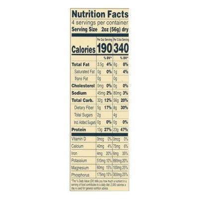 PRODUCT DETAILS: 20 g (per 3.5 oz serving) protein. 8 g (per 3.5 oz serving) fiber. Certified gluten free. gfco.org. Vegan. Gluten-free. 50% more protein. 3x fiber. 25% fewer net carbs (Net carbs = total carbs - dietary fiber). Compare to the leading average pasta. Non-GMO Project verified. nongmoproject.org. Powered by chickpeas. Why make pasta out of chickpeas? Because we want to eat more pasta! So, we thought, why not use chickpeas to make pasta that's nutrient-dense, protein-packed, good-for-the-planet, and delicious? We can keep going but your water is probably boiling and your sauce is likely a-simmering. Go ahead, finish cooking, we'll see you again soon. Low glycemic index. Pasta nightly. eatbanza.com. how2recycle.info. nongmoproject.org. Try recipe! (at)EatBanza. Look for our pizza, mac, and rice in a store near you! Made at our plant in Riverside, California.