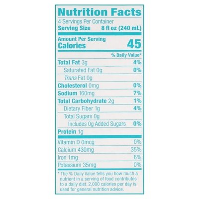 DESCRIPTION: Unsweetened vanilla with other natural flavors. 45 calories per serving. Gluten free. Soy free. Dairy free. Vegan. 40% more calcium than dairy milk (One serving contains 430 mg calcium compared to 300 mg calcium for dairy milk). Non-GMO Project verified. nongmoproject.org. No sugar added. Pssst! Carrageenan free. Enjoy this delicious expression of plant-based wellness, inspired by the nurturing Queen Califia. Pantry peace of mind. Treat your taste buds and calm your mind. This creamy almondmilk dream happily accommodates months of storage for future taste & gratification: At breakfast; in smoothies; in desserts; and recipes. Stock. Store. Sip. Savor. Where plants are Queen. Meet our muse Queen Califia (pronounced cal-uh-fee-ahh), a mythic warrior and fierce protector of the land. It is from her story that the golden state of California inherited its powerful name. And it is her guardian spirit over the life-giving abundance of plants that guides us in our mission to return food to its original nourishing purpose. Let's plant the future, together. Where plant based is planet based. Smooth & delicious. califiafarms.com. Experience more at califiafarms.com. Tetra Pak: Protects. What's good. Tetra Pack: Tetra Brik Aseptic. Please recycle. FSC: Mix - Board. < Almondmilk (Water, Almonds), Calcium Carbonate, Natural Flavors, Sunflower Lecithin, Sea Salt, Locust Bean Gum, Gellan Gum, Potassium Citrate.