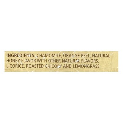 INGREDIENTS: Chamomile, Orange Peel, Natural Honey Flavor with Other Natural Flavors, Licorice, Roasted Chicory and Lemongrass.