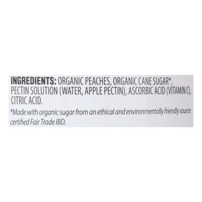 DESCRIPTION: Sweetened with fair trade cane sugar. 30 calories per serving. USDA Organic. Certified organic by QAI. Naturally gluten free. 33% less sugar than a preserve. Non-GMO Project verified. nongmoproject.org. Pick the best Crofter's premium spread. Est. 1989. Varietal fruit chosen with care. croftersorganic.com. Product of Canada. < Organic Peaches, Organic Cane Sugar (Made with Organic Sugar from an Ethical and Environmentally Friendly Source Certified Fair Trade IBD), Pectin Solution (Water, Apple Pectin), Ascorbic Acid (Vitamin C), Citric Acid.
