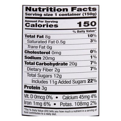 INGREDIENTS: Almonds Milk (Water Almonds), Cane Sugar, Blueberries, Starch, Natural Flavors, Citrus Fiber, Locust Bean Gum, Blueberry and Carrot Juice (for Color), Xanthan Gum, Sodium Citrate, Citric Acid. Live Active Cultures, Live Active Cultures: S. Thermophilus, L. Bulgaricus, L. Acidophilus, Bifidobacteria.
