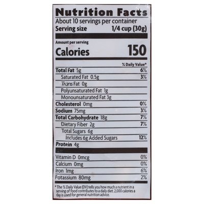 PRODUCT DETAILS: Premium organic granola. Fairtrade dark chocolate, peanut butter & roasted peanuts. 13 g of whole grains per serving. 0 g Trans fat per serving. USDA Organic. Certified Organic: Quality Assurance International. 13 g of whole grains per serving. Low sodium. Whole Grain: 13 g or more per serving. Eat 48 g or more or whole grains daily. WholeGrainsCouncil.org. Cholesterol free. Non-GMO Project verified. nongmoproject.org. Bite4Bite help US spread $2 million of love to food banks. Silky, luscious peanut butter and decadent, dark Fair Trade chocolate upgrade a familiar flavor to a refined, new level in our organic Love Crunch granola. A touch of sea salt and crunchy roasted peanuts add a sophisticated twist to this timeless pairing. It's indulgence, elevated. Co-creators of love crunch. Always organic. We are committed to organic because we believe it's the best (and most delicious choice for our bodies and the planet. Fair Trade Ingredients. Fair Trade certified chocolate directly supports farmers in developing nations through socially responsible and environmentally friendly farming and processing practices. Where there is love, there is life. Mahatma Gandhi. nongmoproject.org. www.naturespath.com/love-crunch. Instagram: (at)lovecruncorganic. Facebook, TikTok(at)lovecrunchorganic. Learn more: www.naturespath.com/love-crunch. Not feeling the love? If you're less than thrilled with this product, let us know. Just send the emptied bag with freshness code to: consumer services c/o Nature's Path Foods. No 275-250 H St. Blaine, WA 98230 USA or contact us at: www.naturespath.com/contact-us and we'll make things right. Our Story: Love Crunch was originally created as a wedding favor by Arjan & Rimjhim. Instead of gifts, they asked their guests to volunteer or give back to the community. Giving back. We keep the spirit of giving alive by supporting food Banks in North America. Love Crunch donates a minimum of $2 million worth of food every year. Product of USA.
