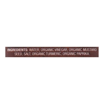 INGREDIENTS: Water, Organic Vinegar, Organic Mustard Seed, Salt, Organic Turmeric, Organic Paprika.