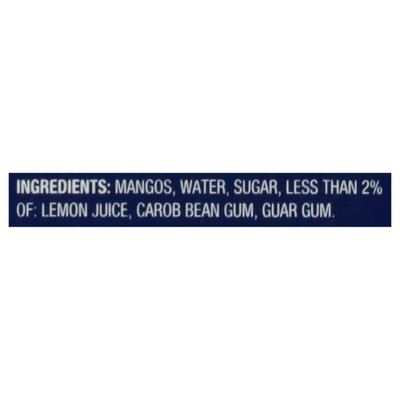 INGREDIENTS: Mangos, Water, Sugar, Less than 2% of: Lemon Juice, Carob Bean Gum, Guar Gum.