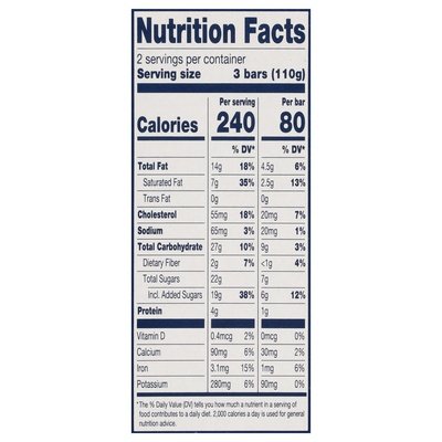 PRODUCT DETAILS: Per 1 Bar: 80 calories; 2.5 g sat fat (13% DV); 20 mg sodium (1% DV); 7 g total sugars. 80 calories per bar. See nutrition information for saturated fat content. New! From jar to bar. Dark chocolate with a twist. For this recipe, we blend sustainably sourced cocoa with milk and sugar to create a rich dark chocolate gelato. We then add a hint of coffee - just enough to enhance the chocolate notes for a perfectly sophisticated chocolate flavor. Recipe 90. Flavors that you know & love now in mini bars! real ingredients. Smooth & creamy. talentigelato.com. how2recycle.info. Scan to learn about Talenti. Questions or comments call or visit us at 1-800-298-4020; talentigelato.com. Gelato & sorbetto bars. Discover your next mini indulgence.