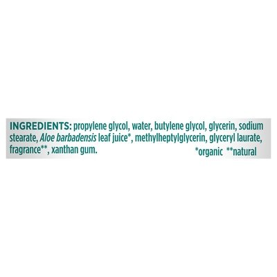 INGREDIENTS: Propylene Glycol, Water, Butylene Glycol, Glycerin, Sodium Stearate, Aloe Barbadensis Leaf Juice (Organic), Methylheptylglycerin, Glyceryl Laurate, Fragrance (Natural), Xanthan Gum.