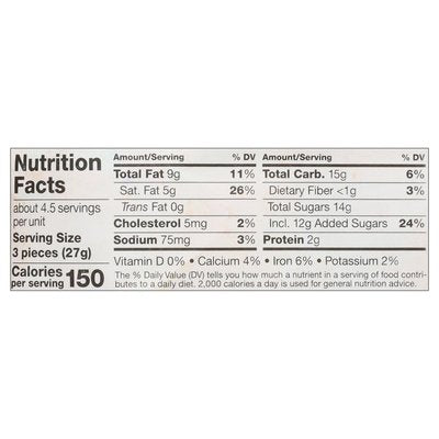 INGREDIENTS: Sugar, Dry Whole Milk, Cocoa Butter, Chocolate Liquor, Caramel (Sugar, Glucose Syrup (Wheat), Butter (Milk), Cream (Milk)), Sea Salt, Soy Lecithin.