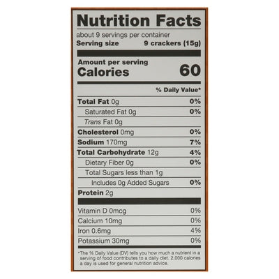 PRODUCT DETAILS: 60 calories per 9 crisps. Thin, light & crunchy. Crackers to savor & share. The flavor that started it all! So light. So crunchy. So versatile. Our Original Crisps complement any pairing & any flavor, from mild cheeses to spicy spreads to just about anything in between. 34-degrees.com. We donate 1% of all the crisps that we bake to causes that fight hunger. Product of USA.