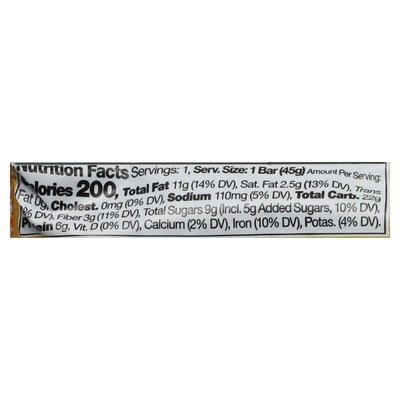 INGREDIENTS: Oats (Certified Gluten-Free Ingredient), Pumpkin Seeds (Certified Gluten-Free Ingredient), Sunflower Seeds (Certified Gluten-Free Ingredient), Dark Chocolate (Certified Gluten-Free Ingredient), (Cane Sugar (Certified Gluten-Free Ingredient), Chocolate (Certified Gluten-Free Ingredient), Cocoa Butter (Certified Gluten-Free Ingredient), Vanilla Extract (Certified Gluten-Free Ingredient)), Brown Rice Syrup, Maple Syrup, Ground Flax Seeds, Cinnamon (Certified Gluten-Free Ingredient), Vanilla Extract (Certified Gluten-Free Ingredient), Sea Salt.