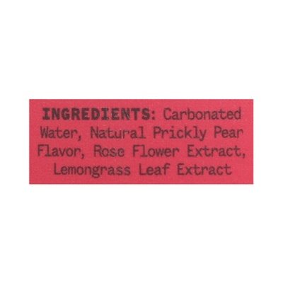 INGREDIENTS: Carbonated Water, Natural Prickly Pear Flavor, Rose Flower Extract, Lemongrass Leaf Extract.