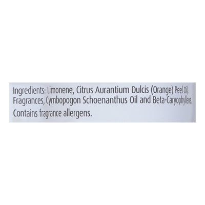 INGREDIENTS: Limonene, Citrus Aurantium Dulcis (Orange) Peel Oil, Fragrances, Cymbopogon Schoenanthus Oil and Beta-Caryophyllene.