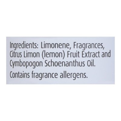INGREDIENTS: Limonene, Fragrances, Citrus Limon (Lemon) Fruit Extract and Cymbopogon Schoenanthus Oil.
