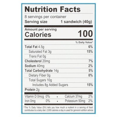 PRODUCT DETAILS: Organic vanilla ice cream between two petite organic chocolate wafers. Only 100 calories per sandwich. No hydrogenated oils. USDA organic. Certified organic by organiccertifiers.com. Organic Indulgence: Julie's vision to develop the highest quality Certified Organic ice cream in America has resulted in this indulgent treat. Made in small batches starting with sweet fresh cream bursting with rich flavor, decadent chocolate and pure vanilla - it's Julie touch that transforms these into smooth, creamy desserts. Julie's Organic means pure ice cream virtually free of pesticides, chemical additives, or genetically engineered ingredients. Look for our full line of indulgent ice cream in pints (474 ml), quarts (947 ml) and novelties. If you don't find them, ask your grocer about ordering Julie's today. Comments: 1-800-282-2202. www.juliesorganic.com. Product of USA.