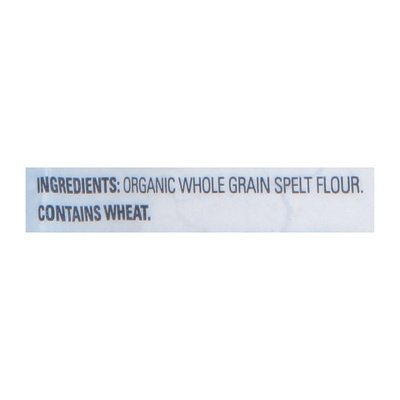 DESCRIPTION: USDA Organic. 100% whole grain 35 g or more per serving. wholegrainscouncil.org. Certified organic by Quality Assurance International (QAI). Good source of fiber. Non-GMO Project verified. nongmoproject.org. Your guide to a life well lived. 1 to 1 baking substitue for all-purpose flour. A Better Way to Bake: Figuring out what works for your body is empowering, but getting there can be challenging. For over 60 years, Arrowhead Mills has inspired, educated, and supported millions to live well-balanced lifestyles. We make eating well easy with a wide variety of essential foods that fuel your day deliciously. Nurturing the organic movement while nourishing strong and able bodies, Arrowhead Mills is your guide to a life well lived. Filled by weight, not by volume. Some settling may occur. www.arrowheadmillls.com. Questions or comments? Call 1-800-474-6552. For more delicious recipes, visit us at arrowheadmills.com. Resealable bag. < Organic Whole Grain Spelt Flour.