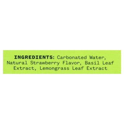 INGREDIENTS: Carbonated Water, Natural Strawberry Flavor, Basil Leaf Extract, Lemongrass Leaf Extract.