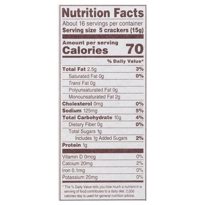 PRODUCT DETAILS: Wheat flour, safflower oil & sea salt. Non-GMO Project verified. nongmoproject.org. Spelling Concerns: ovenbaked New look same great taste! Back to since 1960. Since 1960, Back to Nature has been creating great tasting food inspired by nature and enjoyed by the whole family. Our line of plant based snacks feature high quality ingredients like seeds, nuts, whole grains and wheat flour as the base of our delicious products. We carefully select each ingredient and never use high fructose corn syrup or hydrogenated oils. Other than real honey, in our plant based snacks we avoid any ingredients sourced from animals. Classic Round Crackers: A classic never goes out of style! Our flaky, crispy Classic Round Crackers are oven-baked golden brown and have that authentic delicious taste you love. Made with wheat flour and lightly sprinkled with sea salt, these crackers pair perfectly with soup, a simple piece of cheese, or your favorite toppings. So much good stuff you can see it! It's all good in here! No high fructose corn syrup. No hydrogenated oils. This package is sold by weight, not by volume. Some settling of contents may have occurred during shipping and handling. www.backtonaturefoods.com. To learn more about back to Nature: Visit us and send us your feedback at: Facebook/backtoNature. Twitter: (at)Back2NatureFood. Questions or comments? Call 1-855-346-2225 or visit www.backtonaturefoods.com. Cookies. Granola. Crackers. Nuts. Also try our other cookies, crackers, granola and nuts. You can smile knowing that delicious goodness makes a difference. 100% recycled paperboard. The Nature Conservancy: Back to Nature is proud to help The Nature Conservancy create a world where people and nature thrive because we believe a healthier planet leads to healthier and happier people. We support The Nature Conservancy's Plant a Billion Trees program to ensure clean air and water for generations to come. Join us to help regreen the planet. Our Commitment to Sustainability: This carton is made from 100% recycled paperboard. Our carton manufacturing facility reuses and recycles more than 95% of the solid wastes from the process. And we print our cartons with vegetable inks from renewable sources like soy and flax.