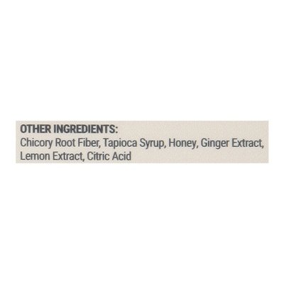 INGREDIENTS: Other Ingredients: Chicory Root Fiber, Tapioca Syrup, Honey, Ginger Extract, Lemon Extract, Citric Acid.
