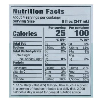 INGREDIENTS: Filtered Water, Organic Coconut Water, Organic Maqui Berries, Organic Guava, Organic Sweet Potato Juice Concentrate, Organic Amla Fruit, Organic Lemon Juice Concentrate, Organic Vegetable Glycerin, Organic Blueberry Concentrate, Purple Carrot, Non-GMO Monk Fruit Flavor, Organic Acai Flavor, Sea Salt.