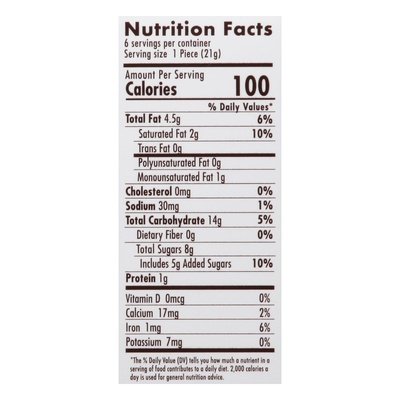 INGREDIENTS: Chocolate (Sugar, Natural Chocolate Liquor (Non-Alcoholic), Non-Dairy Cocoa Butter), Brown Sugar, White Rice Flour, Vegan Butter (Vegetable Oil Blend (Palm Fruit, Canola and Olive Oils), Water, Salt, Contains Less Than 2% of Natural Flavor, Sunflower Lecithin, Lactic Acid (To Preserve Freshness), and Annatto Extract (Color)), Sugar, Tapioca Flour, Potato Starch, Filtered Water, Egg Replacer (Potato Starch, Tapioca Flour, Leavening (Calcium Lactate, Calcium Carbonate, Cream of Tartar), Cellulose Gum, Modified Cellulose), Natural Flavors, Guar Gum, Salt, PGPR, Xanthan Gum, Sodium Alginate.