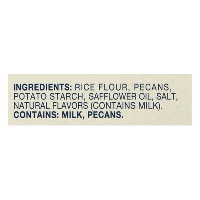 INGREDIENTS: Rice Flour, Pecans, Potato Starch, Safflower Oil, Sea Salt, Natural Flavors (Contains Milk).