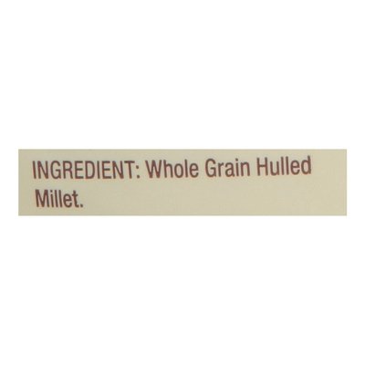 PRODUCT DETAILS: Gluten free. Whole grain. Tested and confirmed Gluten Free in our quality control laboratory. Non-GMO. Reasons to love our whole grain millet: Non-GMO Project verified. nongmoproject.org. An employee-owned company. To your good health. - Bob Moore. Grains-of-discovery. Bob's Red Mill passport to whole grain adventure. Circa - 8000 B.C. The traditional grain of Asia: Has a mild, sweet flavor and quick cooking time. Unique alternative to rice in salads, pilafs and stir fries. Add uncooked millet to bread for extra crunch. Dear friends, At Bob's Red Mill, we're always in search of new whole grain adventures, and grains like millet are more popular than ever. Millet was revered as one of five sacred crops in ancient China, and it may even pre-date rice in the Chinese diet. Today, these super grains are prized for the delicious flavor and texture they add to grain bowls, side dishes, entrees and salads. Try them and you'll see! To your good health, Bob Moore. bobsredmill.com. Visit bobsredmill.com for great recipes like: Millet Spring Roll Salad; Millet Grain Bowls; Millet Stir-Fry. For information and recipes, visit bobsredmill.com. Resealable package.