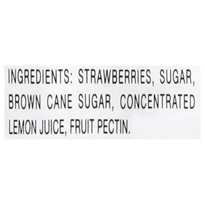 INGREDIENTS: Strawberries, Sugar, Brown Cane Sugar, Concentrated Lemon Juice, Fruit Pectin.
