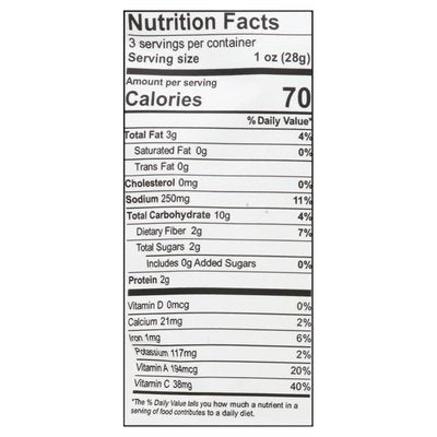 PRODUCT DETAILS: 6 g protein per bag (One bag equals 3 oz). USDA Organic. Certified Organic by CCOF. Certified Gluten-Free. Vegan. Organic is Non-GMO & more. Air dried never baked or fried. Nutrient dense. Plant based. New recipe! 50% more (Brad's 3 oz Veggie Chips contain 50% more chips by weight than our 2 oz bag). More chips in every bag. Snack with purpose. No empty calories. Over 55% of people snack three or more times a day. Our mission at Brad's is to provide this growing community with on-the-go snacks made with real organic vegetables and ingredients, air dried to be as tasty as they are nutritious. Air dried. Better than baked or fried. People know that baked is better than fried. Did you know air-dried is better than both? Our low heat air-dried process allows water to evaporate while keeping in the phytonutrients, enzymes, and antioxidants without adding any oil. Made with real veggies! A lot for a little. No need to buy and prepare mounds of organic veggies when they are already in this bag! Red Bell Pepper: Vitamin C. Flax Seed: Omega 3s. Carrot: Beta-Carotene. Buckwheat: Protein. BradsPlantBased.com. (at)BradsPlantBased. Bucks County, USA.