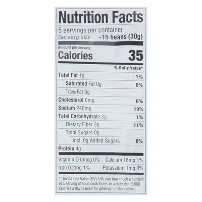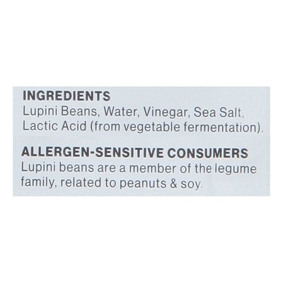 DESCRIPTION: Superbeans gently pickled with sea salt & vinegar. 4 g protein; 0 g net carbs per serving. Protein + Fiber per 100 Calories: Brami Lupini - 20 g; Soybeans - 11 g; Chikpeas - 7 g; Almonds - 5 g. Source: USDA survey foods code 41107010, 41301990, 42101110. Non-GMO Project verified. nongmoproject.org. Salad topper & healthy snack. Amazingly nutrient dense. Addictively delicious. An ancient Roman health secret is reimagined for modern times. Naturally packed with satiating plant protein and fiber, without all the calories and carbs, so you can conquer hunger and feel good. Compliments all occasions. Healthy snacking. Edamame-like appetizer. Salad topper. Macro-bowls & stir fries. Be appetito! Food safe. enjoybrami.com. (at)enjoybrami. Dispose of properly. Product of Italy. Origin: Italy. < Lupini Beans, Water, Vinegar, Sea Salt, Lactic Acid (from Vegetable Fermentation).