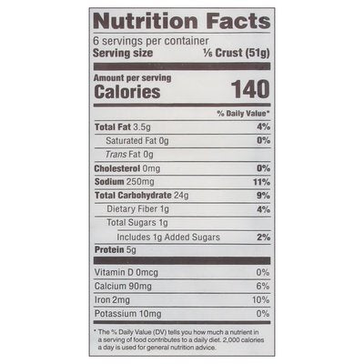 INGREDIENTS: Enriched Wheat Flour (Wheat Flour, Malted Barley Flour, Niacin, Reduced Iron, Thiamin Mononitrate, Riboflavin, Folic Acid), Water, Extra Virgin Olive Oil, Wheat Gluten, Contains Less than 2% of: Yeast, Natural Mold Inhibitor (Cultured Wheat Starch), Sugar, Sea Salt, Sunflower Oil, Vinegar, Fumaric Acid, Ascorbic Acid.