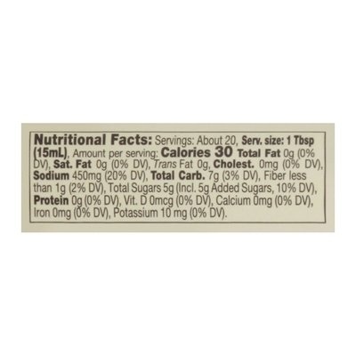 PRODUCT DETAILS: USDA Organic. Soy free. Gluten free. Certified Organic by QAI. Vegan. Keto. Paleo. Non GMO Project verified. nongmoproject.org. Made with coconut aminos. Organic Teriyaki Sauce: Big Tree Farms Teriyaki marinade & sauce is your secret ingredients that takes meals from so-so to teri-iffic! Powered by Coconut Aminos: A nourishing soy sauce replacement. Made from Nira, the nectar of the coconut flower, coco aminos are rich with essential amino acids, low glyremic and with almost half the sodium of soy sauce. No refined sugars. Shake up & enjoy. Nira comes from here, the beautiful blossoms of the coconut tree. Whole 30 Approved. bigtreefarms.com. Share your own recipe! Facebook. Twitter. Instagram. Find fun, simple healthy & delicious recipes at bigtreefarms.com. Control Union fair choice social and fair trade standard. Product of Ball Indonesia.