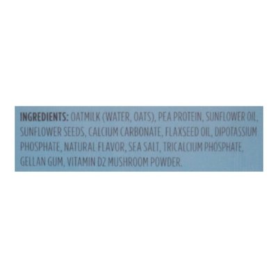 INGREDIENTS: Oatmilk (Water, Oats), Pea Protein, Sunflower Oil, Sunflower Butter, Calcium Carbonate, Flaxseed Oil, Dipotassium Phosphate, Natural Flavors, Sea Salt, Tricalcium Phosphate, Gellan Gum, Vitamin D2 Mushroom Powder.