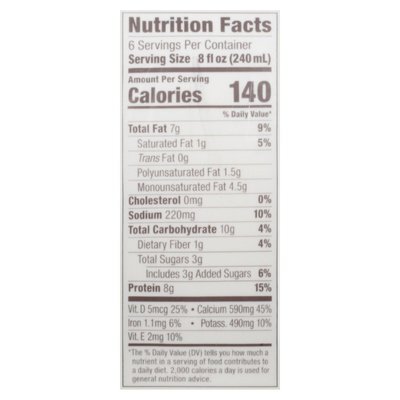 PRODUCT DETAILS: + Omega-3 (Contains 720 mg ALA Omega-3s per serving). 720 mg Omega-3, 130 mg Omega-6 & 4,500 mg Omega-9 per serving Gluten free. Dairy free. Vegan. Omegas 3, 6 & 9 fatty acids. 8 g plant protein. All 9 essential amino acids. Essential vitamins + minerals. Excellent source of calcium & vitamin D. Good source of potassium & vitamin E. Non GMO project verified. nongmoproject.org. Amazing. Dairy free plant milk. Demand more from your Oat. Carrageenan free. Drink remarkably. Unzip it. califiafarms.com. BPA free. Improve recycling.