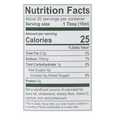 PRODUCT DETAILS: Gluten free. This product is Keto Certified. ketocertified.com. 1 g of net carbs per serving. Non-GMO Project verified. nongmoproject.org. A new level of flavor. Award-winning EVOO meets simple flavors including: Roasted garlic; Turmeric; Dijon mustard; Herb blend. Plant based. www.californiaoliveranch.com. For more on marinating and cooking ideas, visit www.californiaoliveranch.com. Product of USA.