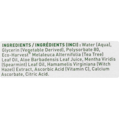DESCRIPTION: Sugar free. Vegan. Gluten free. Alcohol free. Keep your smite bright and your mouth healthy with Desert Essence Tea Tree Oil Mouthwash. A botanical blend of oils and extracts including soothing Aloe provide complete care for teeth and gums. Australian Tea Tree Oil helps defend against sugar acids while reducing buildup. A sweet burst of Spearmint Oil helps keep your mouth feeling clean and extra fresh. www.desertessence.com. Certified B Corporation. Cruelty free. No animal testing. Made in the USA with globally sourced ingredients. < Water (Aqua), Glycerin (Vegetable Derived), Polysorbate 80, Eco-Harvest Melaleuca Alternifolia (Tea Tree) Leaf Oil, Aloe Barbadensis Leaf Juice, Mentha Viridis (Spearmint) Leaf Oil, Hamamelis Virginiana (Witch Hazel) Extract, Ascorbic (Vitamin C), Calcium Ascorbate, Citric Acid.