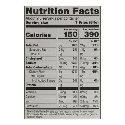 PRODUCT DETAILS: Certified gluten free. gfco.org. Certified vegan. Vegan.org. Non-GMO Project verified. nongmoproject.org. 1 Full serving of veggies (1 serving provides the equivalent of 1/2 cup of vegetables of the 2 1/2 daily cups of vegetables the dietary guidelines recommend for a 2,000 calorie diet. Daily needs may vary depending on age, sex, and activity level). Purely sensible foods. We make food that makes sense: We are Dr. Praeger's - a family-operated food company founded by two heart surgeons. We're committed to encouraging sensible eating through inspired offerings. Everything we create in our kitchen starts with no-compromise recipes that help support an active lifestyle, so your appetite rules, not your schedule. While the world has changed over the last 25 years that we've been in business, we remain true to our values and continue to create products that make our dads proud. Where you recognize all the ingredients: Our recipes are full of pronounceable ingredients with irresistible flavor and uncommon combinations. Tasty and smart aren't meant to be apart. Sense of Family: Brings families together to share nutritious meals and snacks. Sense of Community: Supports organizations that share our commitment to strengthening communities. Multi-Sense(ory) Meals: Provides meals that create an enjoyable food experience. Sense-ibly Sourced: Crafts foods made with traceable ingredients. drpraegers.com. Facebook. Instagram. Paperboard packaging recyclable.