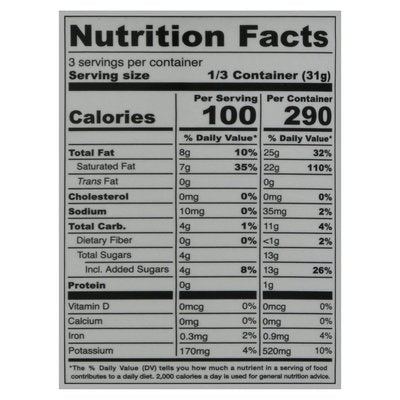 INGREDIENTS: Coconut Cream, Coconut Milk, Vegan Chocolate, Organic Coconut Sugar, Vanilla Extract.