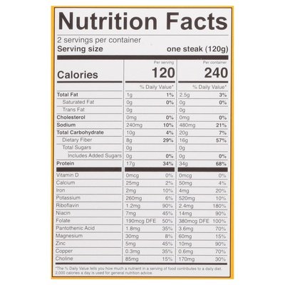 PRODUCT DETAILS: 17 g complete protein per serving. 8 g fiber per serving. No gluten, soy or wheat ingredients, artificial flavors, or colors. Halal: Islamic Services of America, Iowa, U.S.A. Since 1975. Classic Cuts: 95% mushroom root protein. Meati is an animal-free, whole-cut complete protein that is as delicious as it is nourishing, and made from mushroom root. Chef-tested, Mother Nature-approved, and grown to make you feel good about the food you are choosing to eat. Now that's Good Energy. how2recycle.info. Scan for recipes or to learn more about Meati. Contact us at yourfriend(at)meati.com.