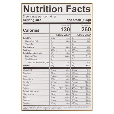 PRODUCT DETAILS: Mushroom root carne asada steak. 17 g complete protein per serving. 10 g fiber per serving. Halal: Islamic Services of America. Iowa. U.S.A. Since 1975. See nutrition information for sodium content. No gluten, soy or wheat ingredients, artificial flavors, or colors. 95% mushroom root protein Classic cuts. Animal-free. Meati is an animal-free, whole-cut complete protein that is as delicious as it is nourishing, and made from mushroom root. Chef-tested, Mother Nature-approved, and grown to make you feel good about the food you are choosing to eat. Now that's Good Energy. Scan for recipes or to learn more about Meati. Contact us at yourfriend(at)meati.com.