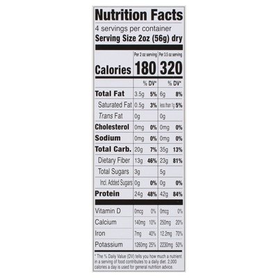 PRODUCT DETAILS: 42 g protein per 3.5 oz serving. Compare 3.5 oz / 100 g servings: Proteins; Explore Cuisine Edamame: 42 g; Average wheat-based pasta: 13 g. Compare 3.5 oz / 100 g servings: Dietary fiber; Explore Cuisine Edamame: 23 g; Average wheat-based pasta: 3 g. Compare 3.5 oz / 100 g servings: Net carbs (Net carbs = total carbohydrate - fiber); Explore Cuisine Edamame: 12 g; Average wheat-based pasta: 71 g. Certified gluten free. gfco.org. Vegan. USDA Organic. Production certified organic by KIWA BCS Oeko-Garantie GmbH. 42 g protein. per 3.5 oz serving. Non-GMO Project verified. nongmoproject.org. A smarter way to pasta. www.explorecuisine.com. (hashtag)explorecuisine. Share your recipes with us: Facebook; Instagram; Pinterest; YouTube; (at)explorecuisine. Explore Cuisine searches the globe to bring you healthy foods! We love to explore and discover innovative, organic foods that are delicious, simple to prepare, colorful and bring plant-based goodness to all. We believe that healthy foods grow from healthy hands, hearts and lives and are committed to trading fairly and organic farming. Through our Food to Thrive Foundation we provide education and empowerment to communities in the developing world to farm sustainably and to prosper. Made in China.