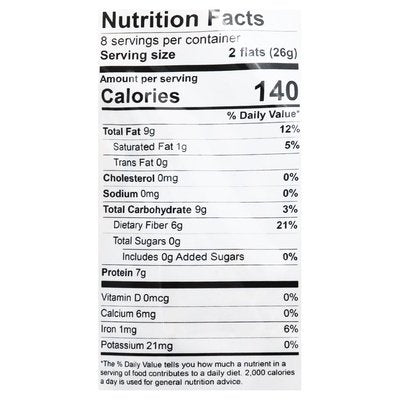 PRODUCT DETAILS: 3 gms net carbs. Omega 3 - 653 mg/serving. Omega 6 - 4260 mg/serving. Omega 9 - 2480 mg/serving. Certified Gluten-Free. Gluten free. Sugar free. Grain free. Vegan. Paleo. Keto. High fiber. Non GMO Project verified. nongmoproject.org. All seed. With pink himalayan salt. Delicious plain and with everything! Scrumptious for breakfast, lunch, dinner, snacks and entertaining! Like crunching into a heavenly slice of pumpernickel! Tasty, aromatic dietary fiber, antioxidants, vitamins and minerals. No preservatives. Simple food. www.ellasflats.com. Facebook. Instagram. (at)ellasflats. Enjoy all of our Ella's Flats flavors - also available in convenient grab'n go snack packs! Sesame Original Recipe. Hemp. Caraway. Cumin. Resealable bag. Made in sunny Florida!