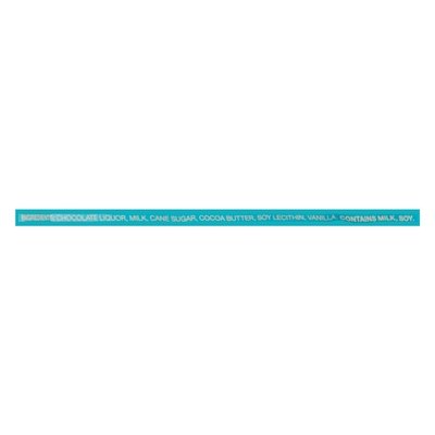INGREDIENTS: Chocolate Liquor, Milk, Cane Sugar, Cocoa Butter, Soy Lecithin, Vanilla.