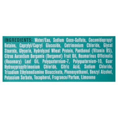 INGREDIENTS: Water/Eau, Ammonium Lauryl Sulfate, Sodium Coco-Sulfate, Glycerin, Decyl Glucoside, PEG-150 Distearate, Glycol Stearate, Cocamidopropyl Betaine, Butyrospermum Parkii (Shea Butter), Hydrolyzed Wheat Protein, Aloe Barbadensis (Aloe Vera) Leaf Juice Extract, Lavandula Angustifolia (Lavender) Flower Extract, Salvia Officinalis (Sage) Leaf Extract, Nasturtium Officinale (Watercress) Leaf Extract, PEG-40 Castor Oil, Tocopheryl Acetate, Polyquaternium-7, Dimethicone Copolyol, Panthenol (Vitamin B5), Sodium Chloride (Sea Salt), Phenoxyethanol, Ethylhexylglycerin, Sodium Benzoate, Potassium Sorbate, Fragrance/Parfum.