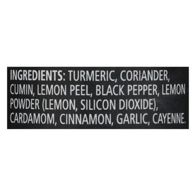 INGREDIENTS: Turmeric, Coriander, Cumin, Lemon Peel, Black Pepper, Lemon Powder (Lemon, Silicon Dioxide), Cardamom, Cinnamon, Garlic, Cayenne.