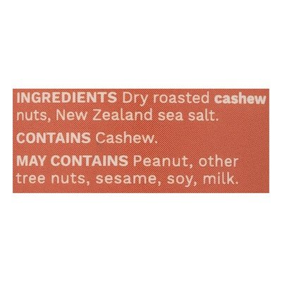 INGREDIENTS: Dry Roasted Cashew Nuts, New Zealand Sea Salt.