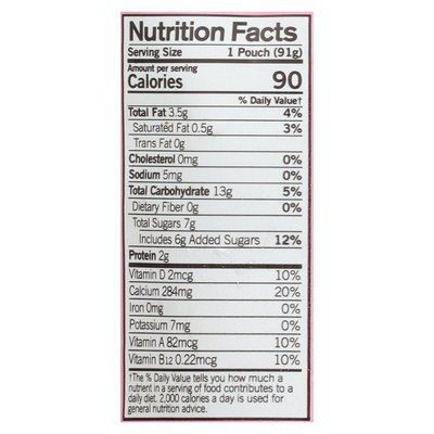 INGREDIENTS: Cashewmilk (Filtered Water, Cashews (Organic)), Cane Sugar (Organic), Coconut Cream (Organic), Strawberries (Organic), Bananas (Organic), Starch Blend (Tapioca (Organic), Corn (Organic)), Inulin (Organic), Calcium Phosphate, Natural Flavors (Organic), Pectin, Guar (Organic) and/or Locust Bean Gum (Organic), Fruit Juice and Vegetable Juice (Organic) (for Color), Lemon Juice Concentrate (Organic), Vegetable Juice (for Color), Agar, Vitamin D2, Vitamin A, Vitamin B12. Live Active Cultures: S. Thermophilus, L Bulgaricus, L Acidophilus, Bifidus, L Lactis, L Plantarum.