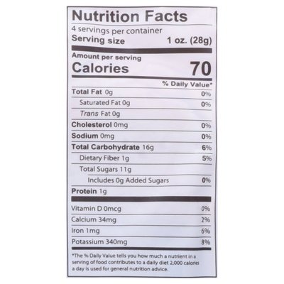 PRODUCT DETAILS: USDA Organic. Certified Organic by CERES GmbH. Certified vegan. Vegan.org. Certified gluten free. Gfco.org. Non-GMO Project verified. nongmoproject.org. Soft & juicy. Pure & simple snacking. Sun dried and rehydrated with water. Contents may settle in transit. Product sold by weight not volume. Simple Snacking, Pure Bliss: One bite and you'll know exactly how Fruit Bliss got its name. Our passion for creating wholesome snacks with simple ingredients is what makes Fruit Bliss downright delicious. It all started as one health-minded mom's mission for clean snacking for her on-the-go family. Juicy and bursting with flavor, Fruit Bliss organic sun-ripened dried fruit is both soft and mouth-watering thanks to an innovative steaming process that infuses it with water. Indulge in Fruit Bliss for a positively blissful snack that you can feel good about. - Susan. 1. Picked ripe. 2. Sun sweetened. 3. Infused with water. 4. Packed with juicy freshness. www.fruitbliss.com. vegan.org. nongmoproject.org. Gfco.org. NEOPlastics.com. Follow Us: Facebook. Printerest. Instagram. Find your bliss at fruitbliss.com. Tel: 646-225-6565. Made with neo plastics packaging to energy. NEO Plastics can increase biogas production at municipal landfills, supporting biogas clean energy programs. Please check if your facility participates. See NEOPlastics.com. Please discard responsibly. A product of Turkey and Uzbekistan.