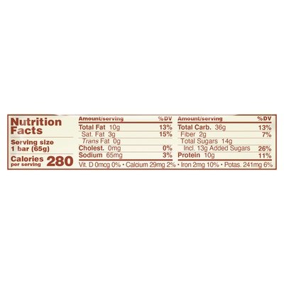INGREDIENTS: Organic Brown Rice Syrup, Organic Peanut Butter, Organic Peanut Butter Chips (Organic Peanut Flour, Organic Cocoa Butter, Organic Coconut Sugar, Salt), Organic Protein Blend (Organic Sprouted Brown Rice Protein, Organic Pea Protein), Organic Puffed Brown Rice, Organic Cocoa Powder, Organic Chocolate Chips (Organic Coconut Sugar, Organic Cocoa, Organic Cocoa Butter), Organic Coconut Sugar, Organic Natural Flavor, Organic Sunflower Oil, Sea Salt.
