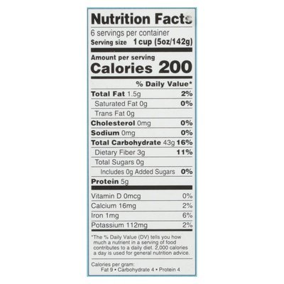INGREDIENTS: Cooked Organic Whole Grain Brown Rice (Water and Rice).